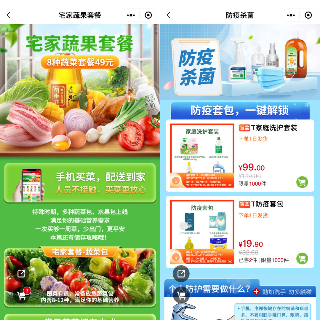 面对突然激增的购物需求,为减少居民外出购物被传染风险,美特好、全球蛙充分发挥线上线下全渠道优势,利用“美特好到家”APP/小程序、“多歌儿”小程序等多种线上购物渠道,上线居家防疫所需各类民生大礼包,加大社群营销服务,引导居民线上购物、错峰购物,提供配送到家服务,工作人员停休,全力支持配送,减少居民因外出购物被传染风险,有效保障居民健康安全。