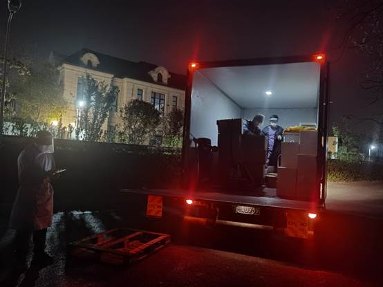 (图:与人民心连心 深夜政府应急车帮封控人员购买物资)