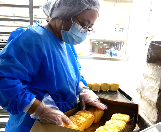 自4月初,上海疫情防控进入重要阶段以来,家乐福会员店烘焙主管马雪清带领着在岗闭环驻店的1-3人烘焙团队,生产了10万余份臻选自制烘焙产品,以日常1/5的人手供应着超平日高峰时段的3倍以上订单量。