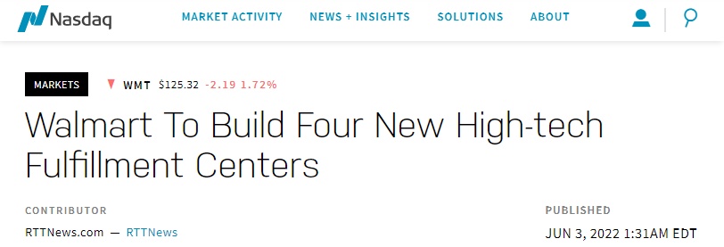 据外媒报道,沃尔玛宣布计划在美国建立四个新的高科技履行中心,每个中心创造1000多个新工作岗位。