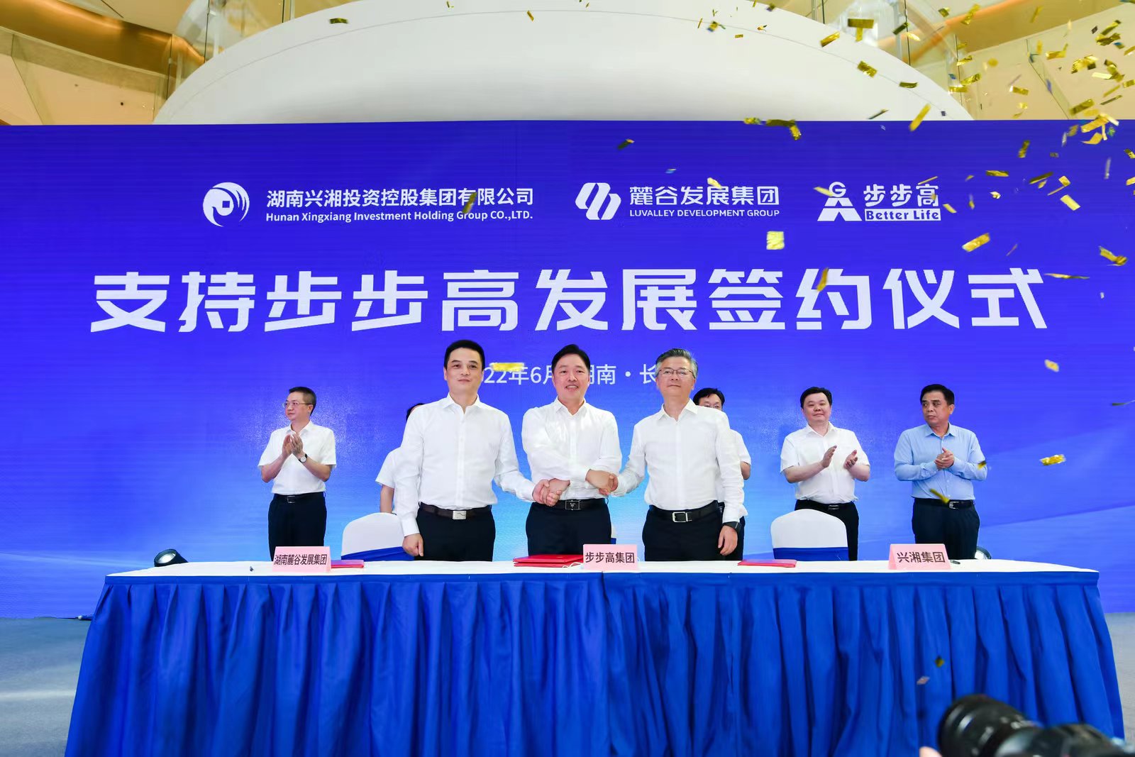 6月14日,“支持步步高发展签约仪式”成功在湖南长沙举办,湖南兴湘投资控股集团有限公司、麓谷发展集团分别与步步高签订《意向协议》,将向步步高提供共计20亿元的流动性资金支持,联袂为步步高集团发展助力。