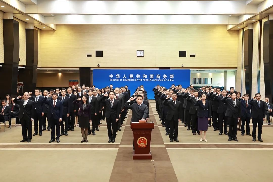龙商网消息:7月15日,商务部举行宪法宣誓仪式,部党组书记、部长王文涛同志监誓,党组成员、副部长盛秋平同志主持,87名新任职司处级干部依法进行了庄严的宪法宣誓。