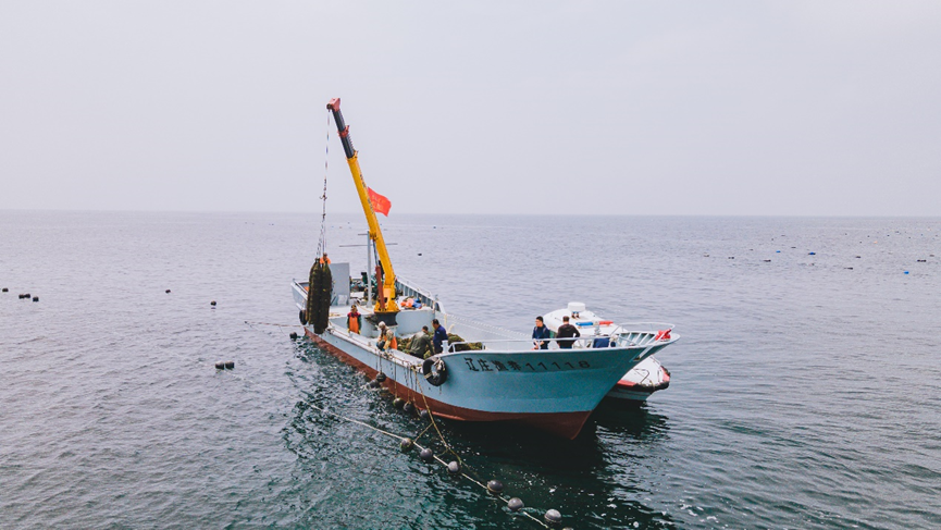 6月19日,庄河海上盒马村揭牌——这里养殖区位于北纬39°,从海域温度、盐度上,都是贝类海产品的极佳生长区。