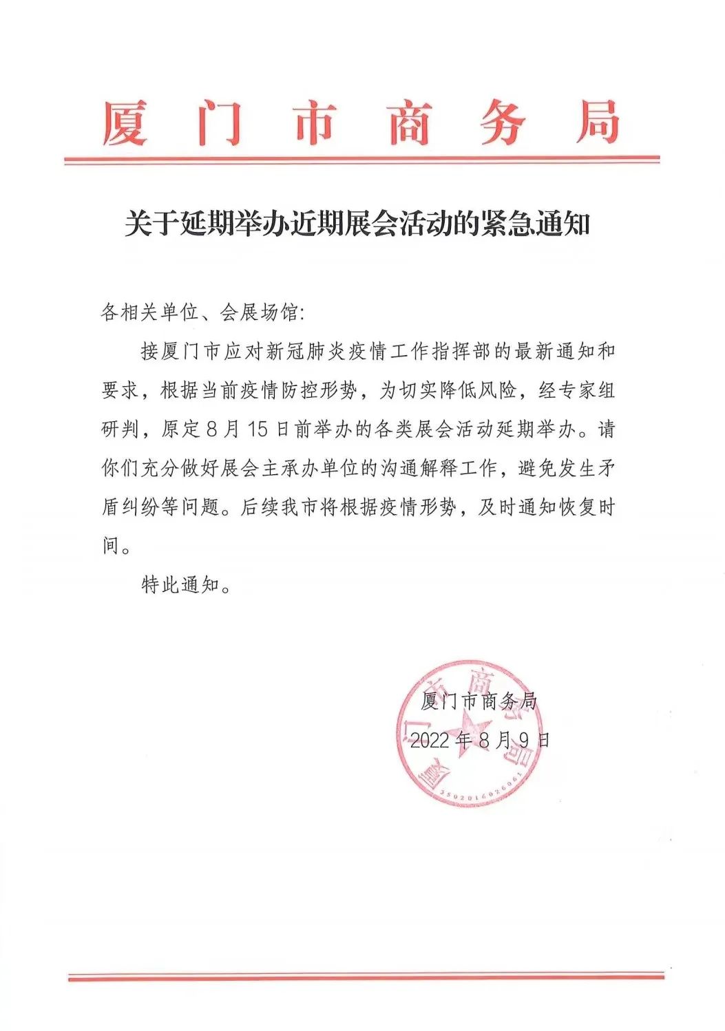 接厦门市商务局通知,同时也为了配合当前疫情防控的要求,即时起第十四届全球自有品牌产品亚洲展(厦门)将暂缓开幕。