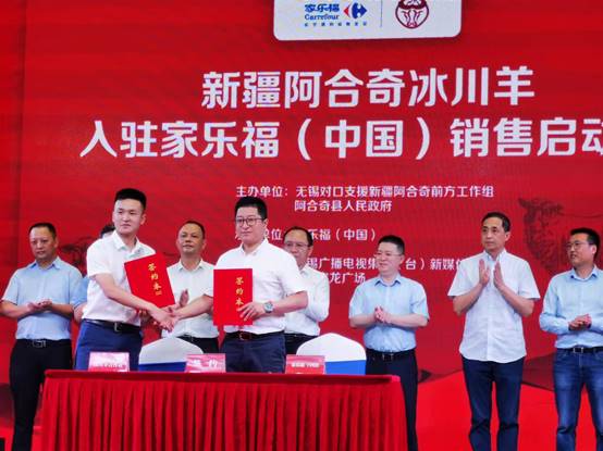 在8月18日,无锡宝龙广场举办的阿合奇冰川羊入驻家乐福(中国)发布会上,家乐福(中国)与来自新疆阿合奇县冰川牦牛养殖合作社的代表进行了合作签约,达成采购合作意向超千万元。