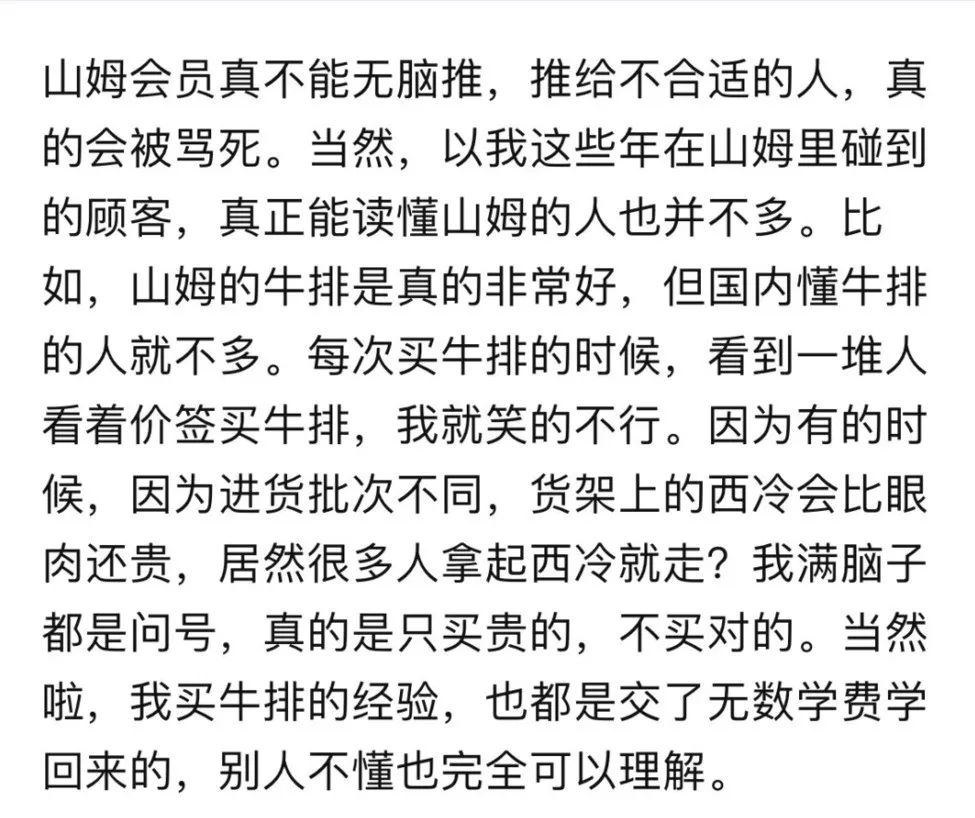 “如果你喜欢山姆的烤鸡,说明你要么是托,要么是代购,要么是打卡,要么根本不懂山姆。”