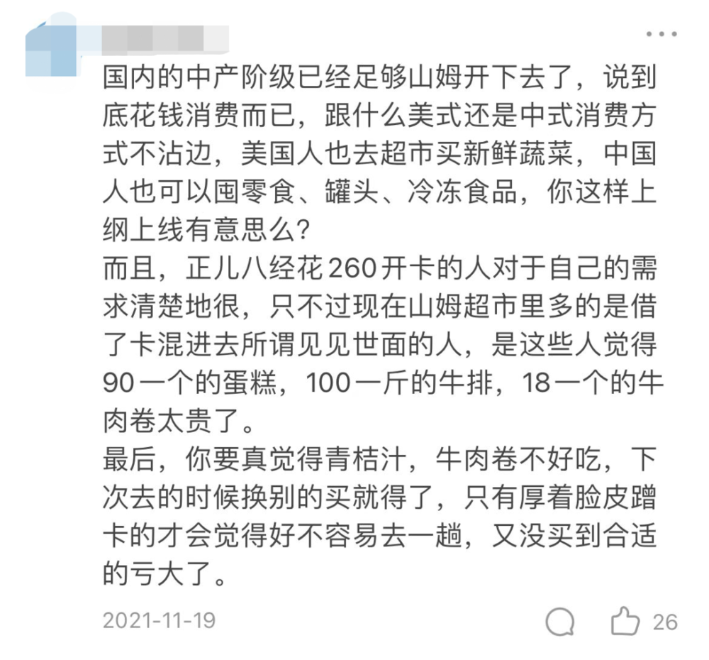 如果你说山姆划算,也会有人质疑你的经济能力: