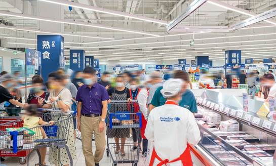 (图:上海嘉定区南翔家乐福会员店内消费者热情高涨)