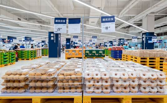 据了解,家乐福南翔会员店SKU扩充到了超过4000款,涵盖大牌特供、全球好物以及自有品牌,包括零食区、烘焙区、熟食区、果蔬区、生鲜区、酒水区、玩具区、家电区、个护区9大分区。