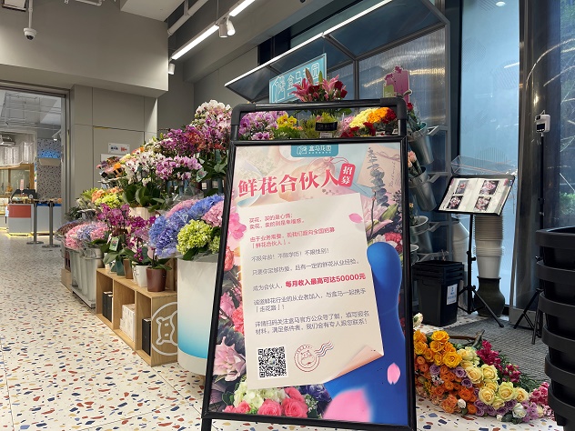 记者在招募海报中看到,合伙人可以把盒马花园当作自己的花店,但不用付租金,无需加盟费、水电费,也不用操心进货、补货,背靠盒马已有的供应链、线上线下一体化的销售渠道,做好门店端的经营即可。按照估算,月收入最高可达50000元。