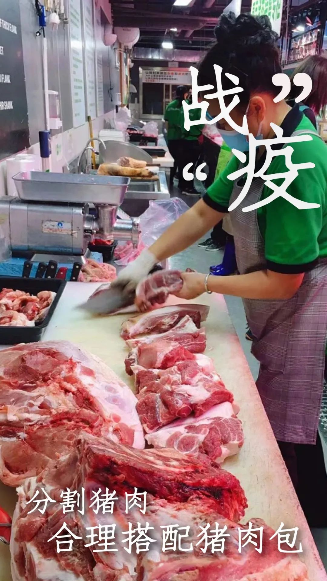 第一步,分割猪肉,合理搭配猪肉包。