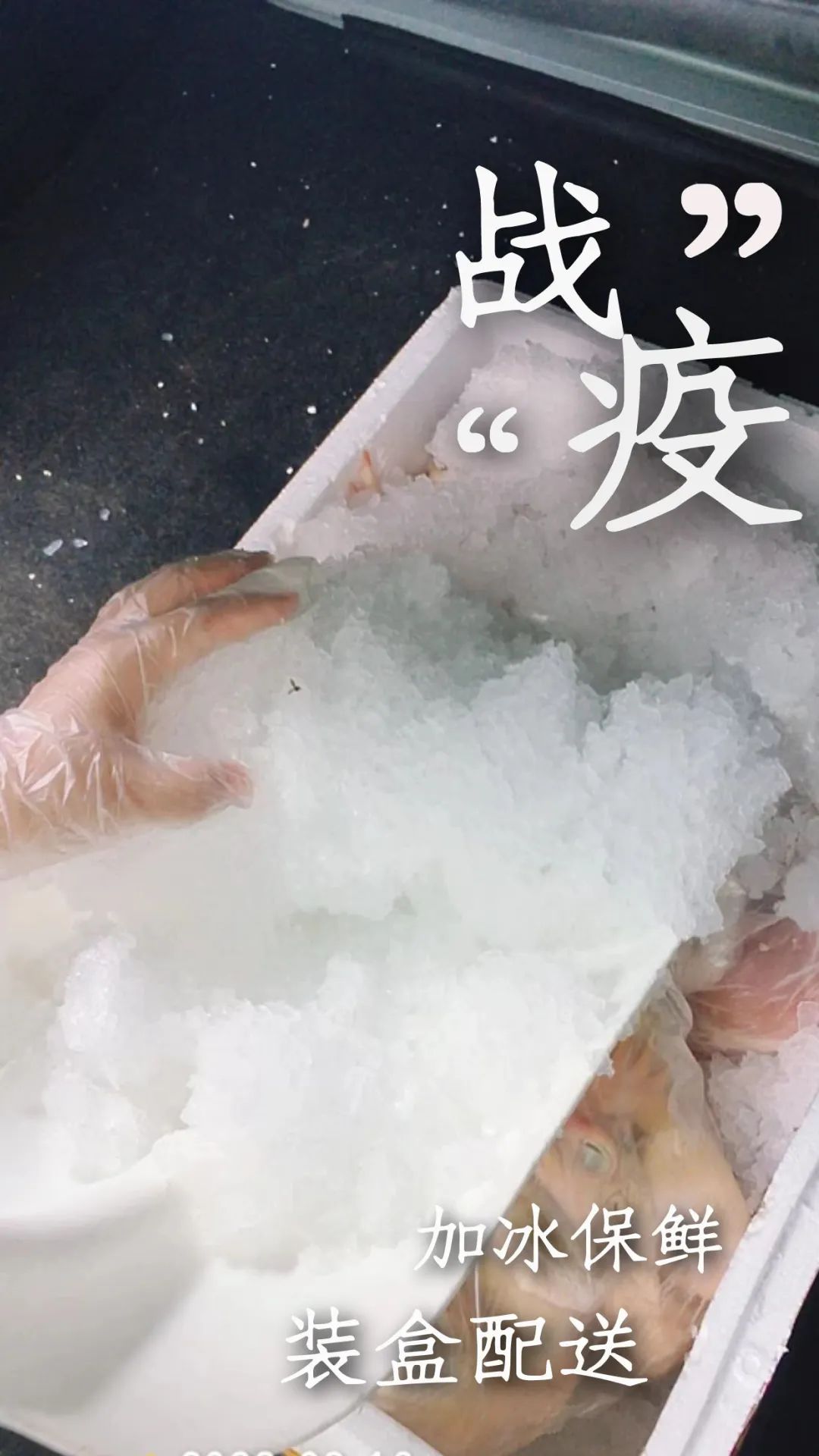 第五步,猪肉必须放在保鲜箱里面,底层铺垫一层冰,将猪肉放好,上面再次撒上冰,做好保鲜工作。