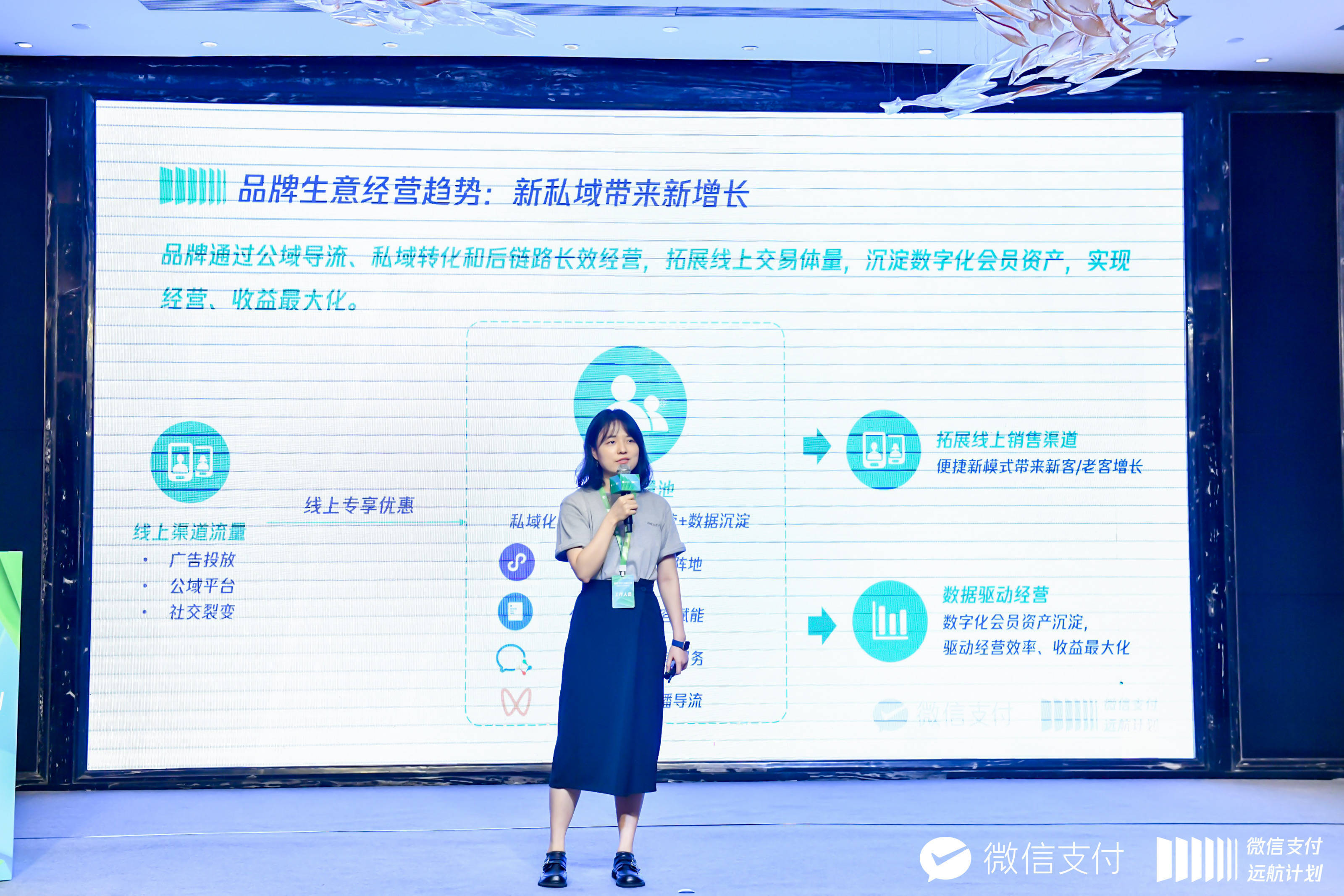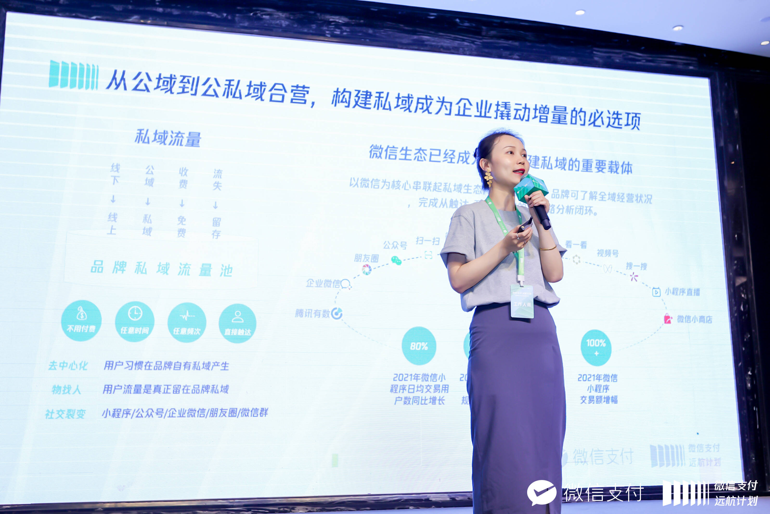 在微盟企业发展事业群增长运营部负责人王媛媛看来,微信生态体系里面的生意机会对商家的吸引力正变得越来越大,“微信支付不只是提供功能和支付工具,更多的是场的能力,我们对商家一直强调的是,微信生态已经从之前最适合你去建私域场的平台,变成你在这个体系里面可以去做公私域联营的场。”