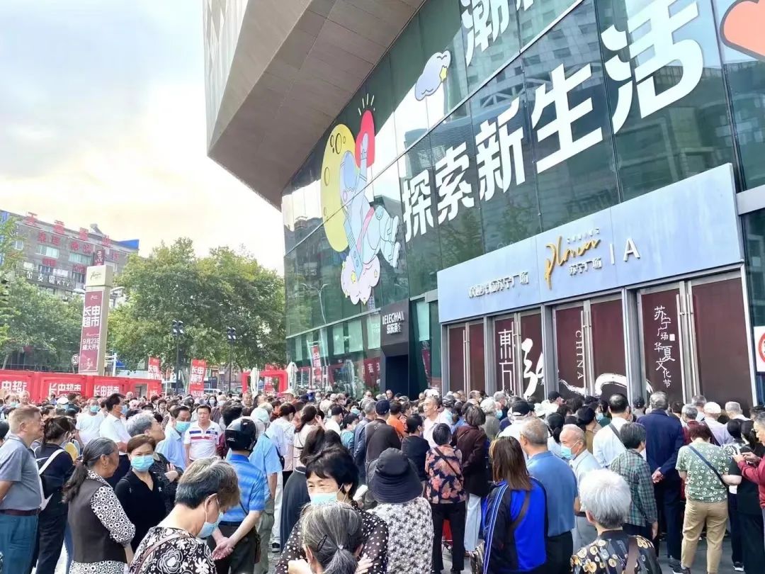 今天是周五,不少年轻人都还在上班,所以在现场还是以中老年人为主。工作人员也说,一般苏宁商场周五下午车流人流都会开始变多,周末来吃饭、购物的人会多起来,所以预计下午晚上超市的人会更多。