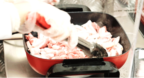 开业当天,烘焙区、熟食区也成为消费者进店必逛的区域。比如在熟食区,消费者人手抢购一份脆皮五花肉,而这款五花肉成为网红爆款,不仅是好吃,它的生产过程“看得见”也是非常关键的。在现场,工作人员介绍,这款五花肉是家乐福自研自产自销,整个研发过程历经半年,再从厨房版本经过多次工厂技转,其中包括人工切割,滚揉腌制,风干烤制等多项工艺,才有了瘦而不柴,香而不腻的口感。