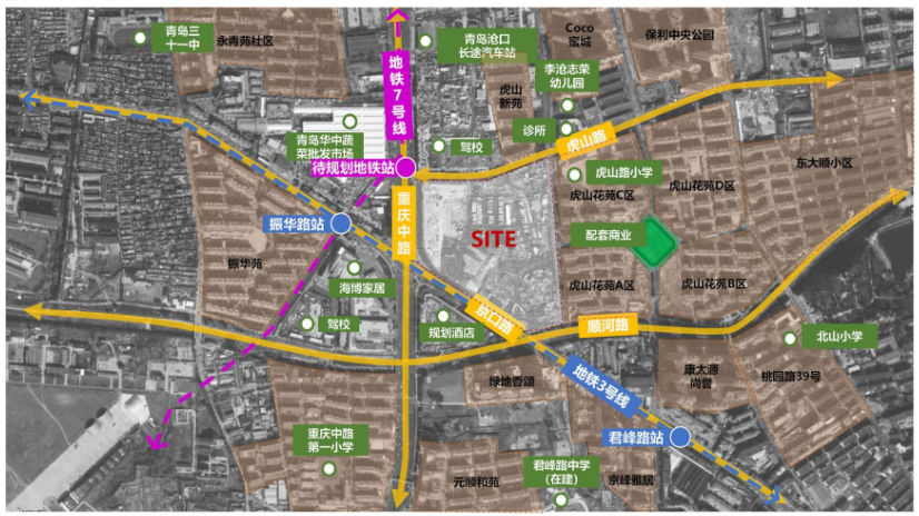 该地块位于李沧区京口路以北、重庆中路以东、虎山路以南、顺河支路以西,占地面积9.18万㎡,由青岛四维空间建设发展有限公司在今年9月15日以20.6亿元摘得。据了解,该地块位于李沧核心,距离李沧商圈仅1.2公里,周边配套完善,靠近地铁7号线站点,附近还有长途汽车站点、市场、幼儿园、小学、居住区、酒店等。从地图上可见,周边虽然基础设施配套完全,但缺乏大型商业综合体,永旺梦乐城的入驻能进一步填补市场空白。