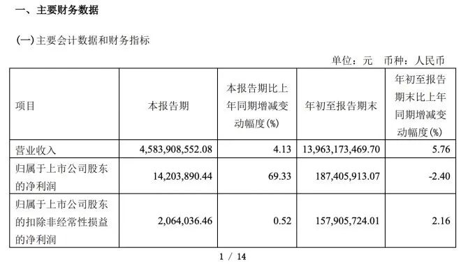 龙商网消息: 10月27日,家家悦发布的第三季度报告显示,第三季度实现营收45.84亿元,同比增4.13%;归属上市公司股东的净利1420.39万元,同比增69.33%。前三季度,家家悦实现营收139.63亿元,同比增加5.76%;归属上市公司股东的净利1.87亿元,同比下降2.4%。...