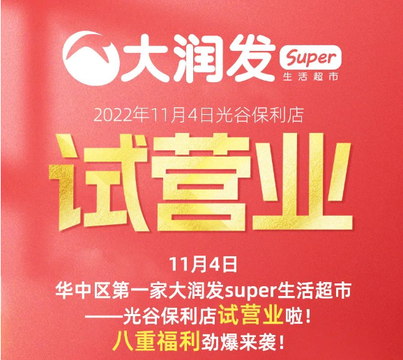 龙商网消息:大润发Super生活超市光谷保利店近日开始试营业,该店位于武汉市东湖新技术开发区武汉保利广场B1层,是华中区第一家大润发super生活超市。据了解,大润发旗下的Super生活超市总SKU数量大约在1.2万,食品占比高达85%,生鲜占比20%。同时,该店还将店内蔬菜、水果、肉类,尤其是海鲜等生鲜商品的丰富程度做了针对性的提升。除此之外,在商业空间和场景打造上,该店不仅引入了祐禾、宜昌肥鱼、黄陂三鲜、北京烤鸭、吉食热卤、日料寿司等颇具烟火气的美食专区,还特别设置了时尚潮饮区、生活美学区、网红商品区,对周边商圈消费群体的需求有着更强的洞察力和吸引力。