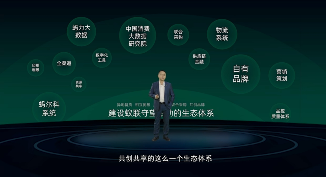 同时他表示,未来蚂蚁商联将在自有品牌经营、联合采购、品控质量体系、全渠道、供应链金融、大数据、知识培训等方面从行业内到外部全方位赋能,通过高效整合资源把供应链做成价值链,形成覆盖零售商、品牌商、制造商、服务商等多端的崭新蚂蚁生态,为行业发展做更大的贡献,实现共创共建共享共赢。
