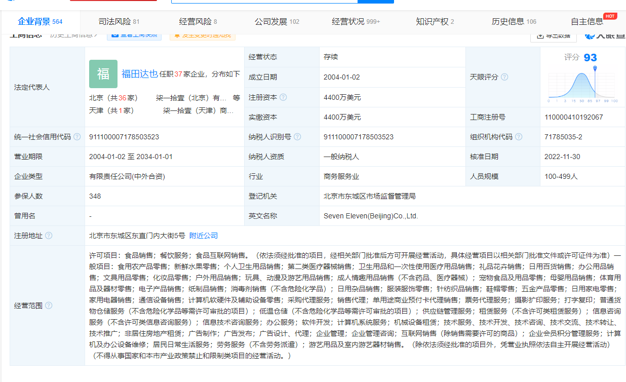 龙商网消息:天眼查APP显示,柒一拾壹(北京)有限公司近日发生工商变更,公司经营范围新增食品互联网销售;第二类医疗器械销售;化妆品零售;低温仓储等。信息显示,该公司成立于2004年,法定代表人为福田达也,注册资本4400万美元,股权穿透图显示,该公司分别由柒一拾壹(中国)投资有限公司、王府井、中国糖业酒类集团有限公司共同持股。