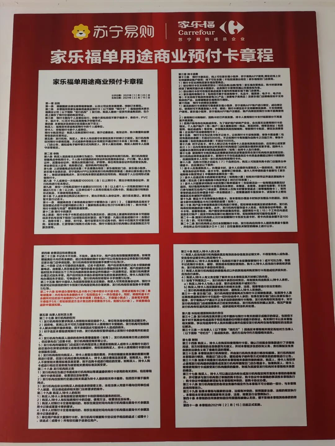 家乐福凯德MALL大峡谷店的《家乐福单用途商业预付卡章程》
