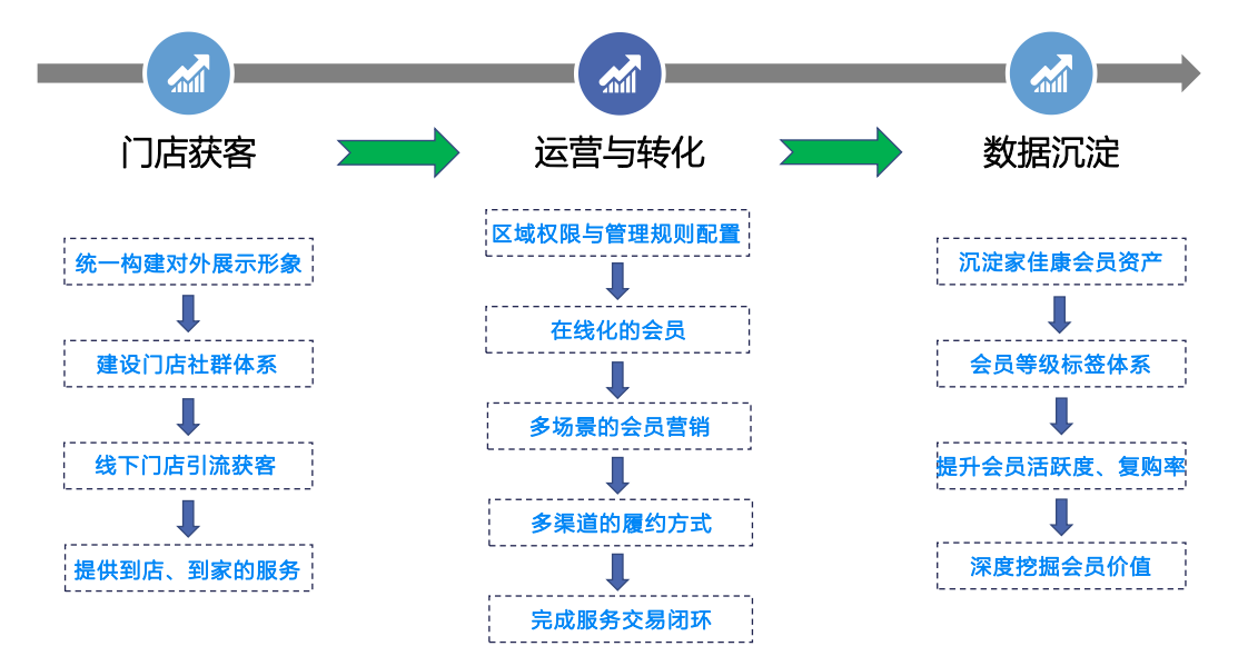 基于中粮家佳康服务民生肉制品的特点,结合当下消费者个性化、便捷化、社交化的特征。为了助力家佳康更好的贴近消费者。科脉团队提出了赋能门店3公里的会员私域运营玩法,帮助门店建立私域流量池,实现会员资产变现。