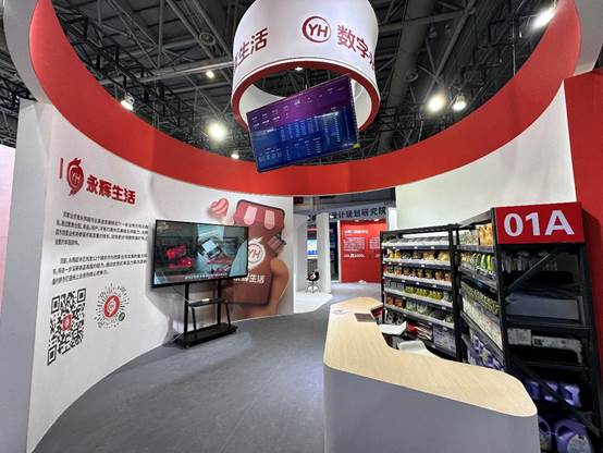 在到家业务的互动展区,永辉超市搭建了小型“虚拟仓”,用户可以在该展台扫码、下单,通过仓内的履约数字屏,更切实地感受到数字化带给零售行业的升级迭代。