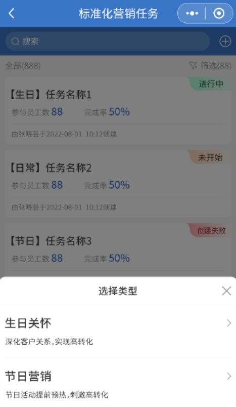 离职继承:人员离职时,可以通过离职继承功能,将离职员工的顾客资源、社群,分配给其他在职员工, 其中还可以选择部分分配或全部继承给指定员工;