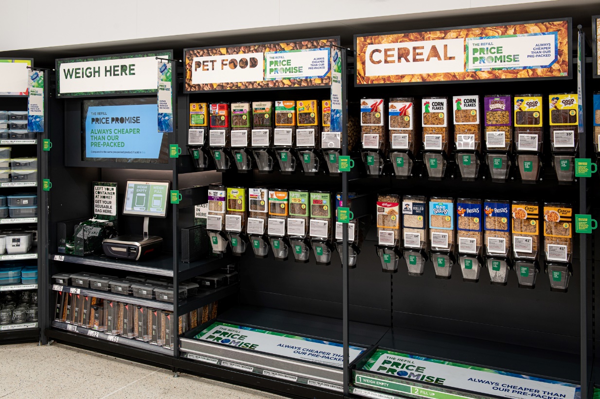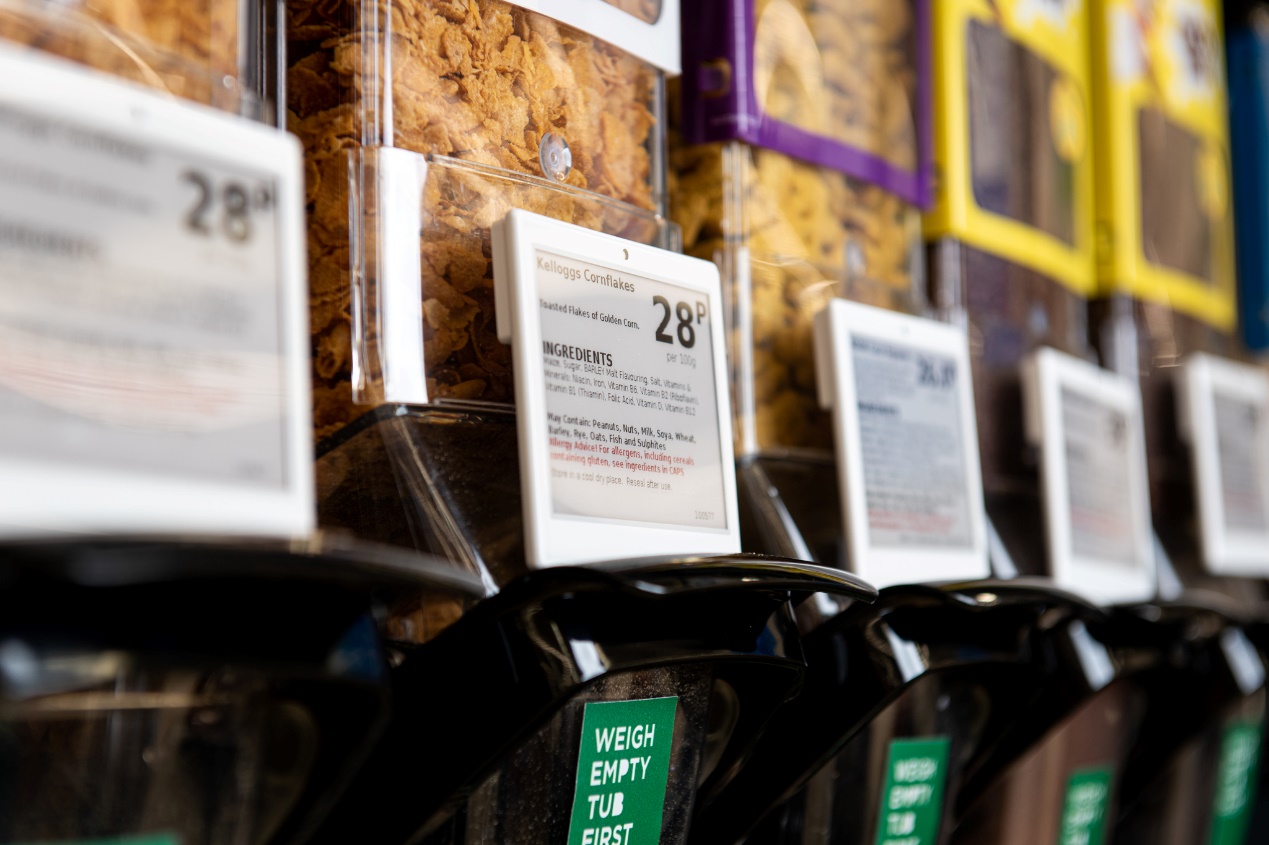 据了解,ASDA英国米德尔顿门店推出一项“续装价格承诺”计划,顾客可以通过自带容器或在店里购买可重复使用的容器,以更加优惠的价格购买店内食品谷物等商品。Avery Berkel和汉朔提供的数字化门店解决方案,则助力了ASDA更完善、高效地推进了这一服务,践行了其“零浪费购物”的承诺。电子价签解决方案为ASDA门店减少了人工运营的时间和成本,支持零售商对于价格和促销信息实时更新;同时,汉朔电子价签解决方案可以清晰地为顾客展示同一产品包装版本和未包装版本的价格差异,方便顾客查看比较,以获得更加可持续的购物方式,这也是ASDA在零浪费购物计划中重要的一个举措。