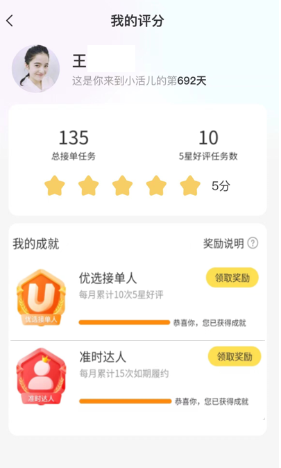 在小活儿平台上,企业可以通过技能评价体系对临时工进行评价,技能越多的自由职业者将有更多的平台接单机会,从而获取更好的收益。据了解,此次升级小活儿还新增了自由职业者成就页面,完成特定任务量和如期履约可点亮对应“优选接单人”、“准时达人”勋章。这不仅提高了劳动者的工作积极性和效率,还增强了员工的归属感和荣誉感,从而进一步提升了企业的整体运营效益。