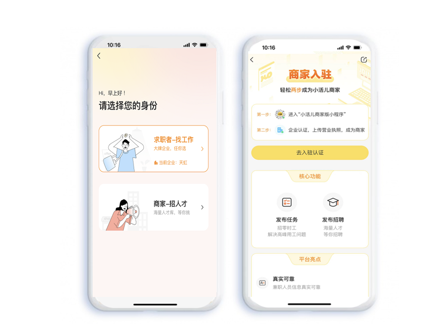 和传统的招聘软件不同,小活儿的优势在于简单快捷,方便商家快速入驻。在完成实名认证和企业认证后,商家不再需要辛苦地在店门口张贴线下招聘广告,也不再担心无法招到合适的员工。通过小活儿平台,商家可以快速发布任务,找到合适的零工人选。这样不仅节省了人力物力,还提高了招聘效率。此外,商家还可以在小活儿上进行对应的门店管理、人员管理和工资的核验结算等一系列工作。