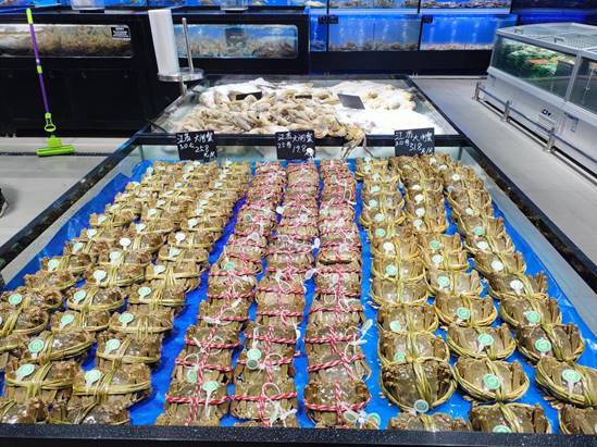 开业现场人气火爆,超市营业面积为3100平米,定位为大型生活服务超市,经营品类齐全,其中,生鲜品类占据比较大的面积,涵盖蔬菜水果、鲜活水产、肉类以及冻品等。