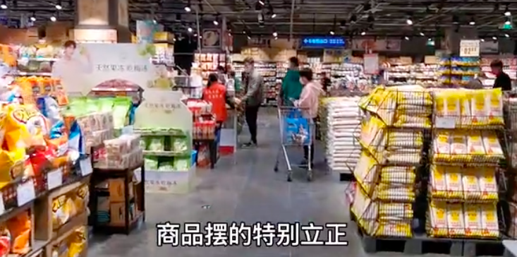 还有人到了现场发现,从没有过商品摆放这么立正的超市,无论什么,都是整整齐齐叠在一起,不同品类的标志也很明显,要拿什么都很方便。