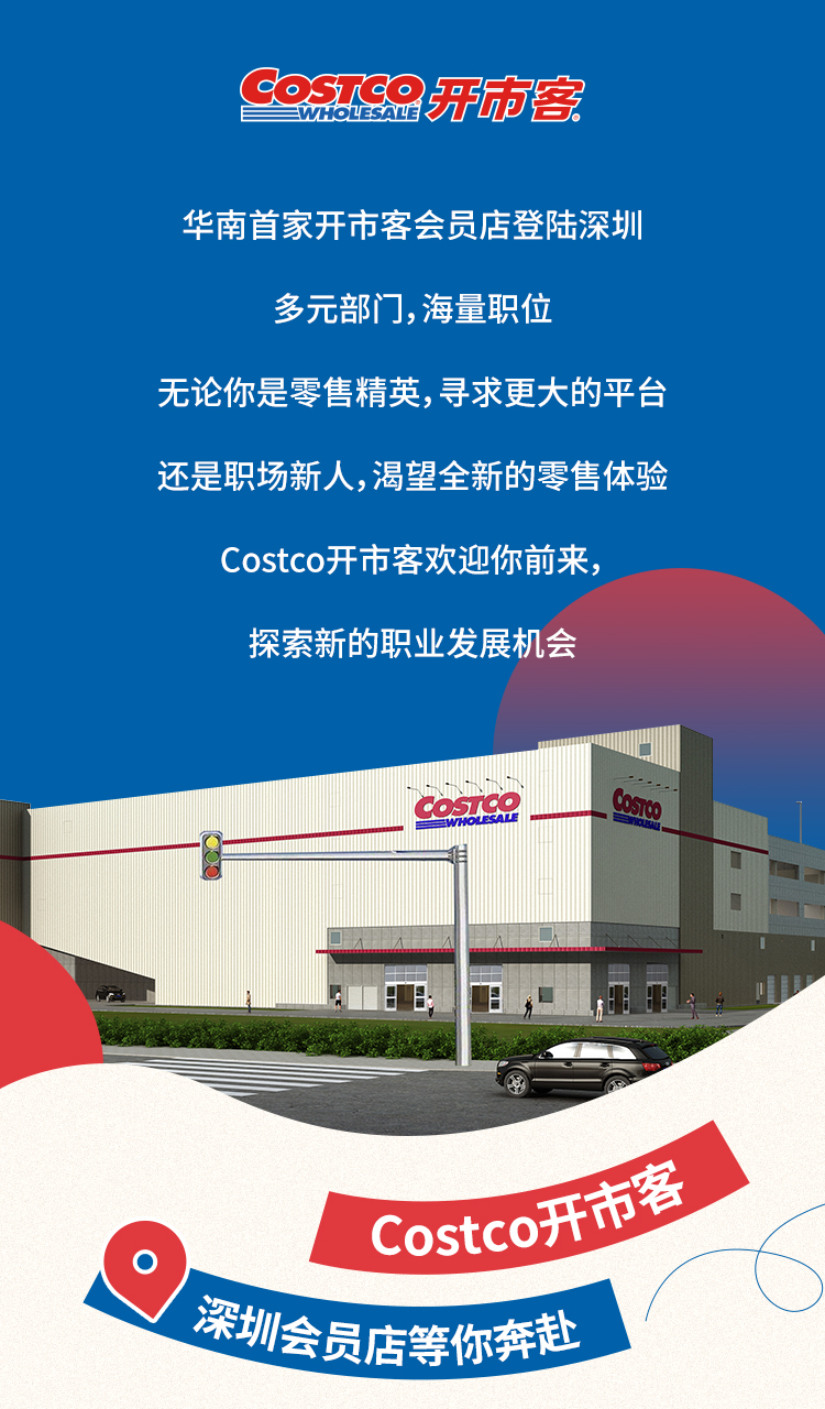 龙商网消息: Costco开市客公众号发布深圳分店招聘消息。Costco开市客深圳店位于深圳市龙华区新区大道617号,提供了众多职位选择。这些职位包括会员部的会员行销专员、柜台员工收银员、收银助理,生鲜部的补货员、收货部员工,商品部的肉品部、鱼部门、熟食...