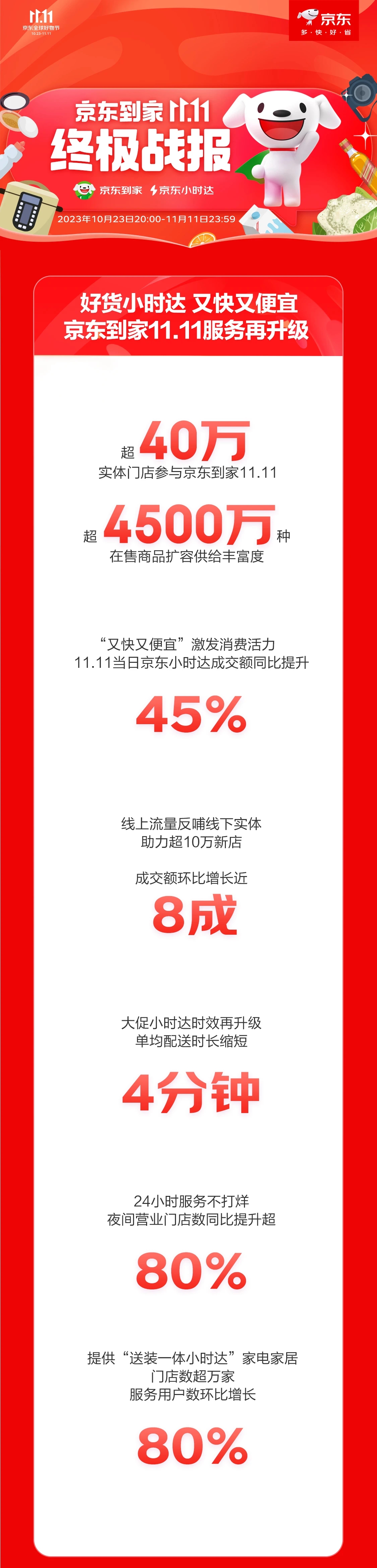 10月23日晚8点,京东11.11海量便宜好货“现货开卖”,开售10分钟下单用户数、成交订单量同比增长均超4倍。