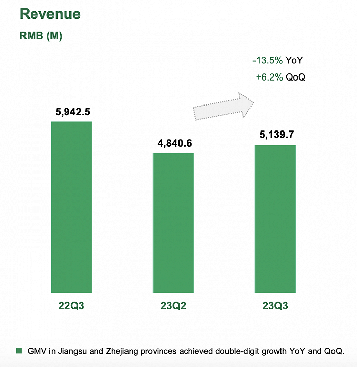 财报显示,目前叮咚买菜上海区域该季度GMV环比增长7.8%,江苏和浙江两个区域的多项指标均有提升,两个区域GMV环比增长均超13%,且下单用户规模持续扩大,连续实现四个季度覆盖总部费用后的区域整体盈利。