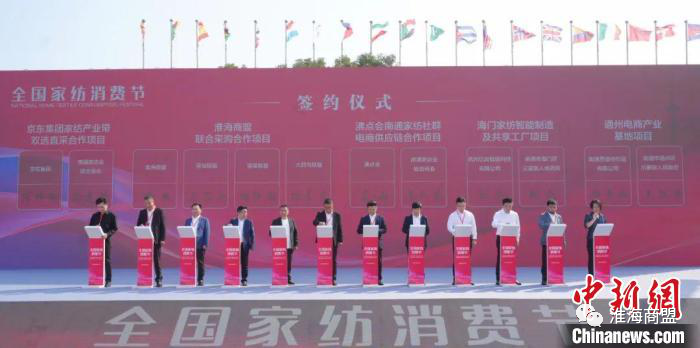 10月27日上午,在全国家纺消费节开幕式上,淮海商盟与壹家联盟、坚果联盟、火烈鸟联盟等供应链组织达成联合采购合作意向,会长许治代表联盟在开幕式集中签约仪式上签字