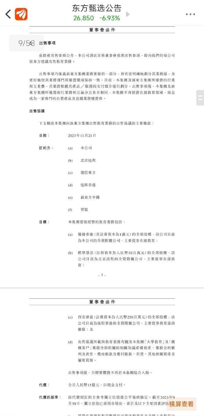 龙商网消息: 12月27日消息,东方甄选发布公告称,向母公司新东方建议出售教育业务,总价为15亿元。此次出售为广义新东方集团业务重组的一部分,旨在明确划分业务线,使其与运营环境更一致。...