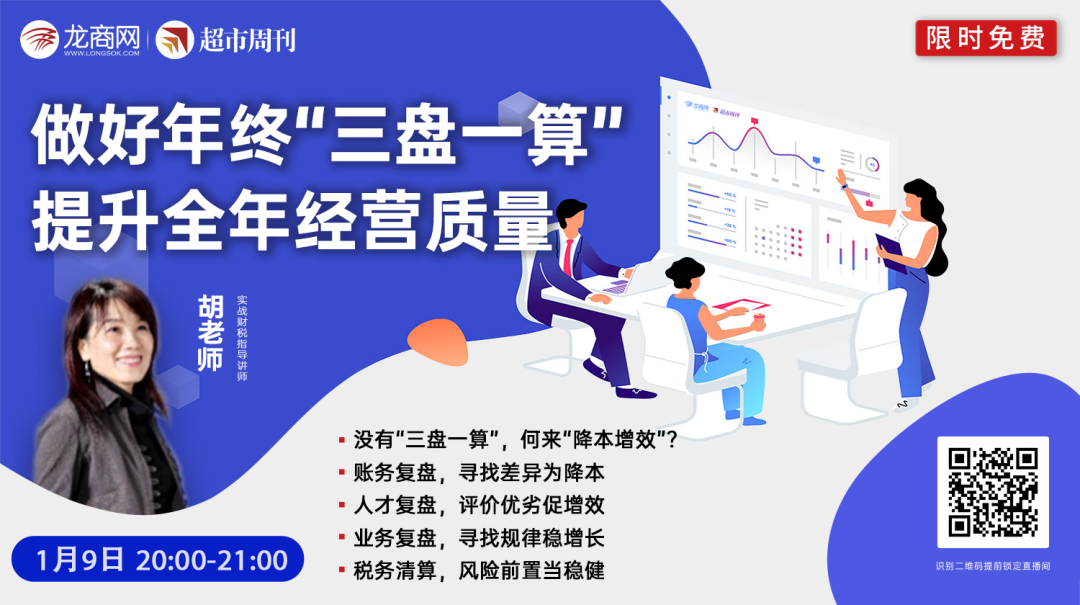限时免费,扫码预约 要点:提升全年经营质量 时间:2024年1月9日 20:00 主讲:资深零售管理实战讲师 内容: 1 三盘一算,降本增效 2 账务复盘,寻找差异为降本 3 人才复盘,评价优劣促增效 4 业务复盘,寻找规律稳增长 5 税务复盘,风险前置当稳健 龙商网超...