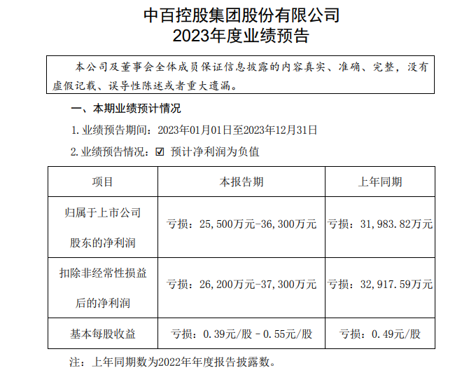 中百集团预计2021年归母净亏损2300万元-3200万元