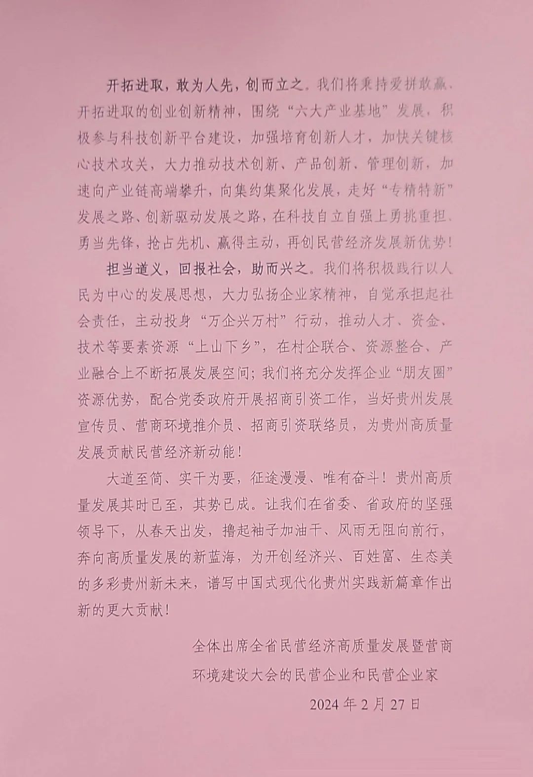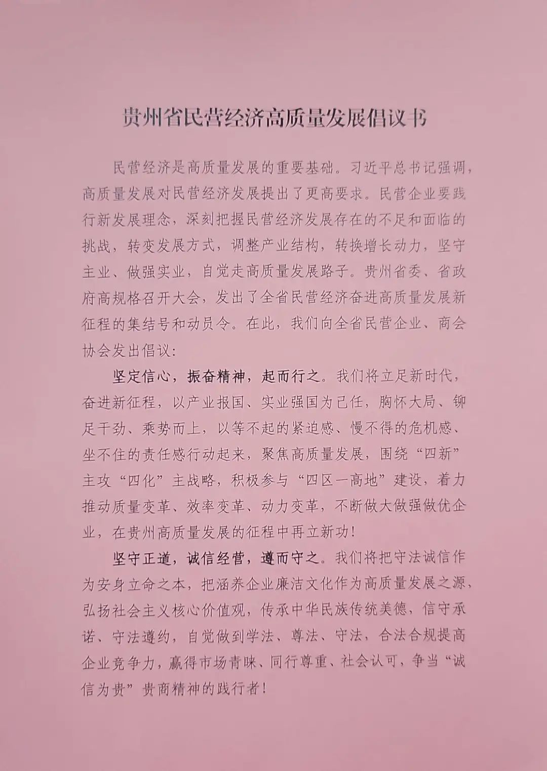 《贵州省民营经济高质量发展倡议书》