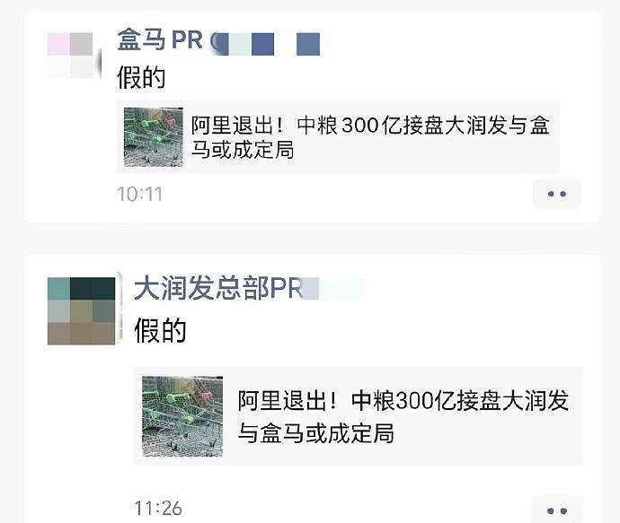 龙商网消息: 3月17日,针对盒马和大润发将被出售给中粮的消息,盒马和大润发的公关在朋友圈表示否认。盒马方面表示,出售和价格都是不实消息。3月16日有消息称,阿里内部基本已经确定,把大润发和盒马出售给中粮,大润发约预估100亿人民币左右,盒马约预估2...