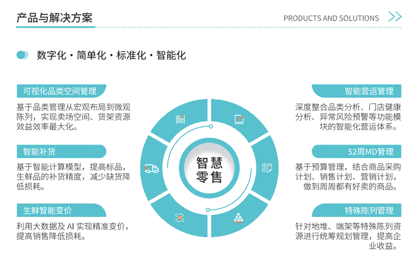 本次展会数图带来了六款智慧零售系统产品,分别是可视化品类空间管理系统、智能营运管理系统、智能补货系统、52周MD管理系统、特殊陈列管理系统和生鲜智能变价系统。