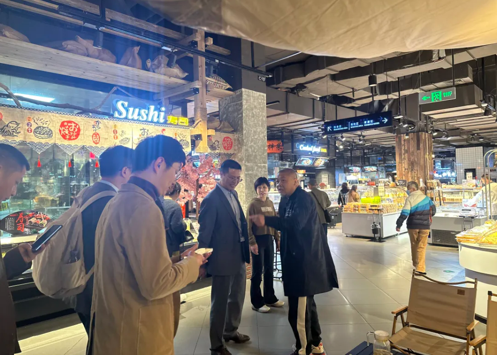 在卖场,杜晓宜向彭建真介绍了雅斯的品类构建情况。打造沉浸体验式的购物环境,雅斯超市把市集生活气息搬进卖场,随处可见的商品现场加工和餐饮美食制作更加贴近消费者生活。