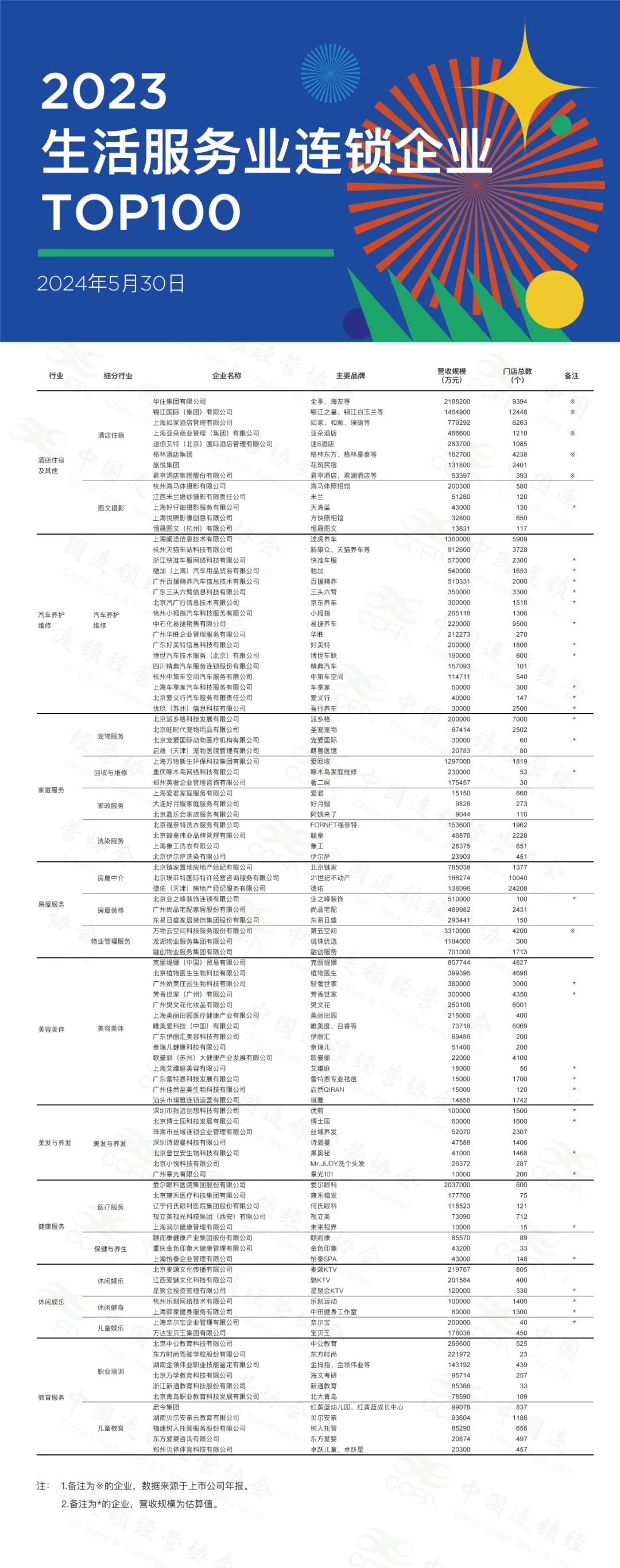 根据调查统计结果,在5月30日召开的2024中国特许加盟大会&生活服务业发展大会上正式发布了“2023年生活服务业连锁企业TOP100”。
