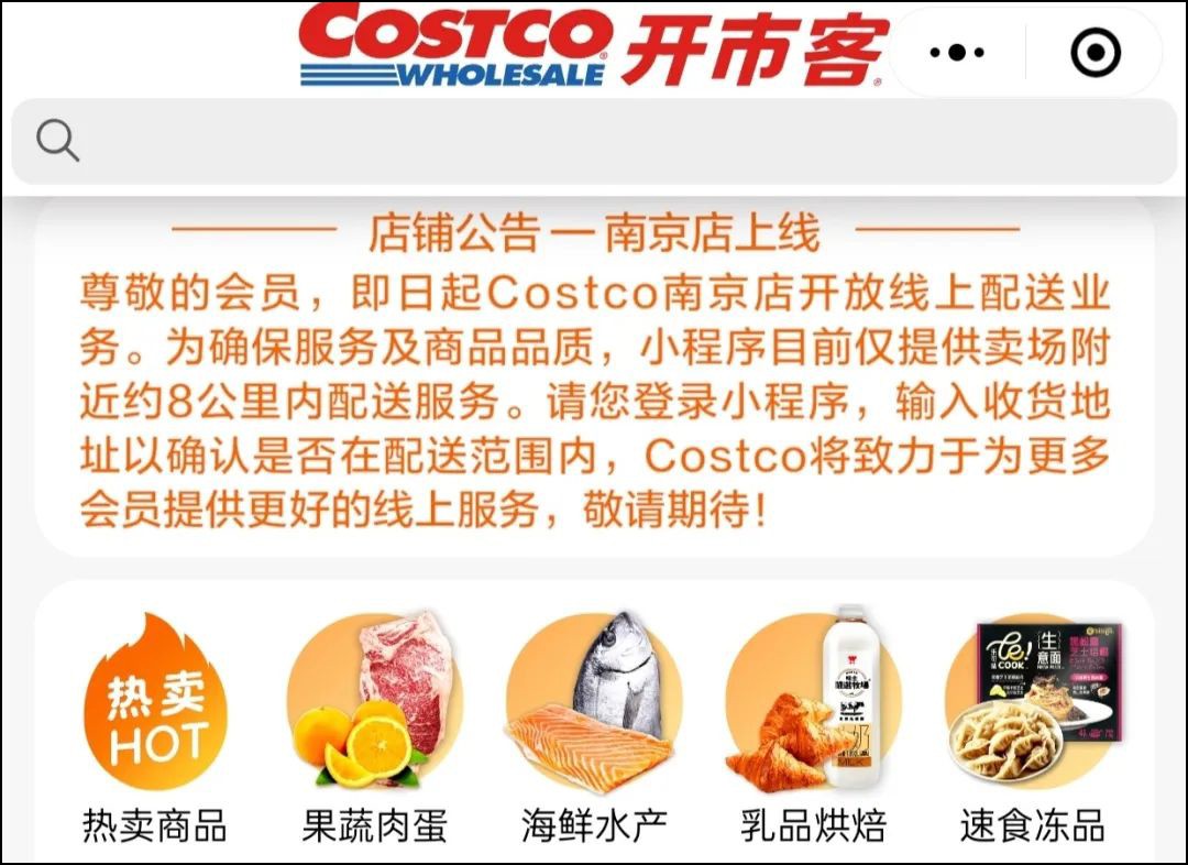 龙商网消息:7月4日,南京开市客宣布正式开通线上配送服务。