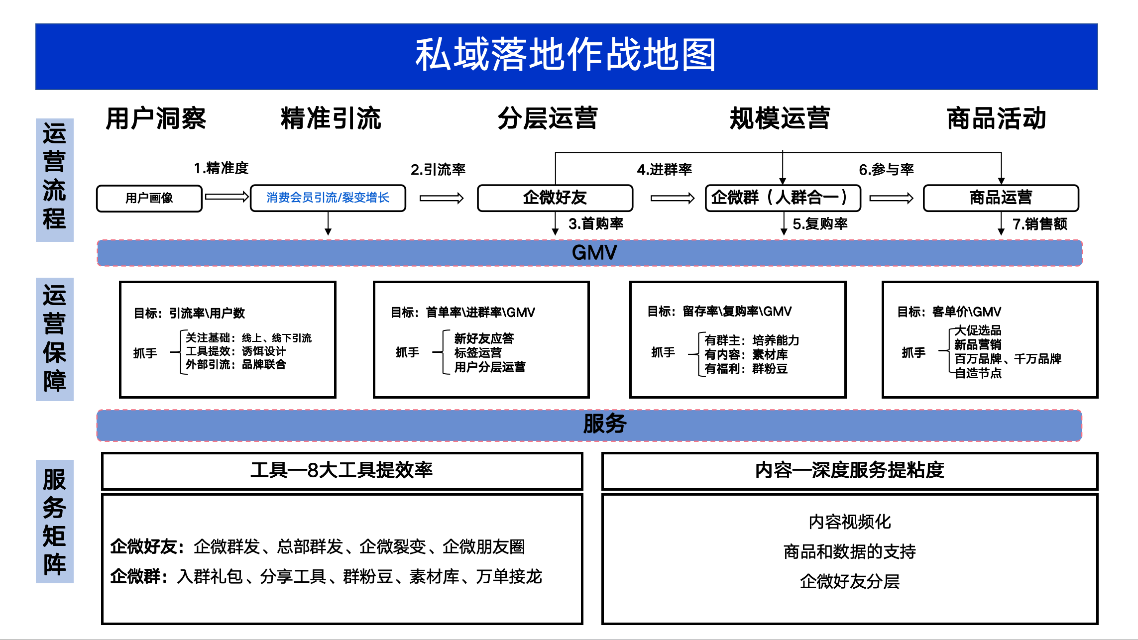 在私域中,通过系统化的运营策略和打法,最大程度利用好工具和内容,实现会员数量的增长和GMV的提升。