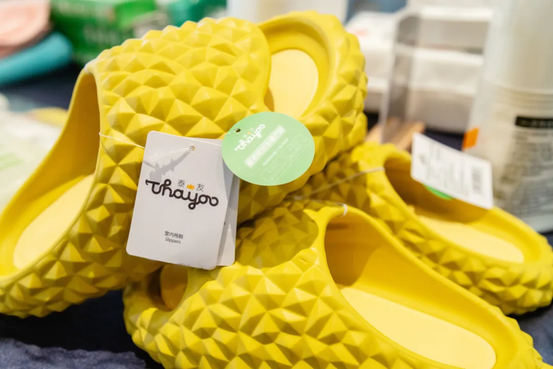 “非食品类参评产品比去年多一倍”,这是来自评审团的普遍感受。易初莲花,老牌大卖场的代表,今年带上新颖的泰友软弹榴莲拖鞋系列参评金星奖。