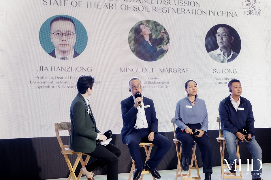 在国际“由壤而生”论坛的中国场的现场,作为科研、民间个人、企业和公益组织的代表,全球土壤持久性自由基研究的著名专家贾汉忠先生、中国首个民间生物多样性保护区“天籽”创始人李旻果女士、夏桐中国酒庄总经理苏龙先生、轩尼诗“‘植’此青绿计划(Forest Destination)”合作伙伴唐友德先生以及良壤有机联合创始人黄显妘女士结合实践尝试和项目成果参与了两场圆桌讨论。期间,他们不仅分享了中国不同地域独特的土壤形态和土壤保护的前沿理念及实践,也从公益和企业行为的角度分享如何通过行动,从视觉、味觉、听觉、嗅觉的视角加强人与自然之间的联结和影响,并实现自然与商业、自然与生活的多赢。