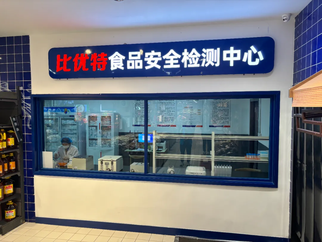 同时在比优特超市沈阳塔湾店店、大连印象城店、哈尔滨通乡店、鹤岗黎明店成立门店区域食品安全检测中心,对所在区域门店水产、海鲜、肉畜、禽蛋的兽药残留,熟食、干货非法添加进行全面检测,并做检测公示,计划全年检测6万批次,对不合格产品第一时间预警处理。